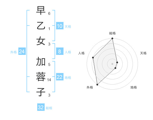早乙女 加蓉子さんを姓名の画数から五運を鑑定