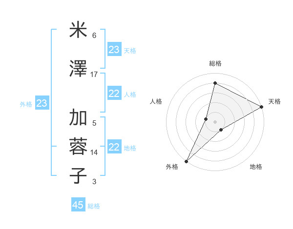 米澤 加蓉子さんを姓名の画数から五運を鑑定
