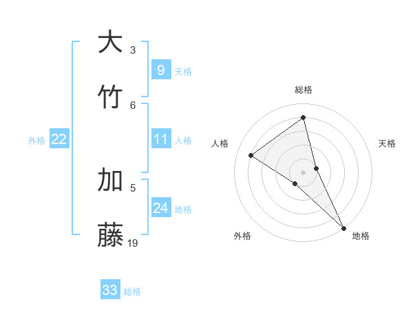 大竹 加藤さんの総格は33画の4点!