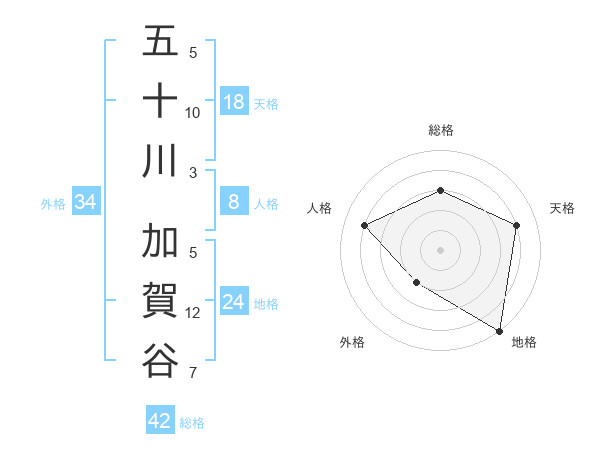 五十川 加賀谷さんの総格は42画の3点!