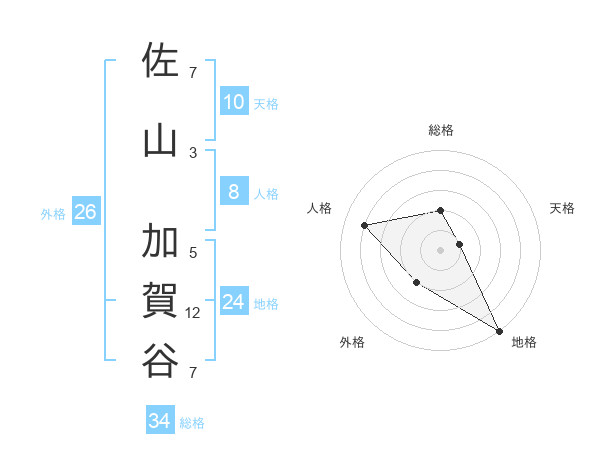 佐山 加賀谷さんを姓名の画数から五運を鑑定