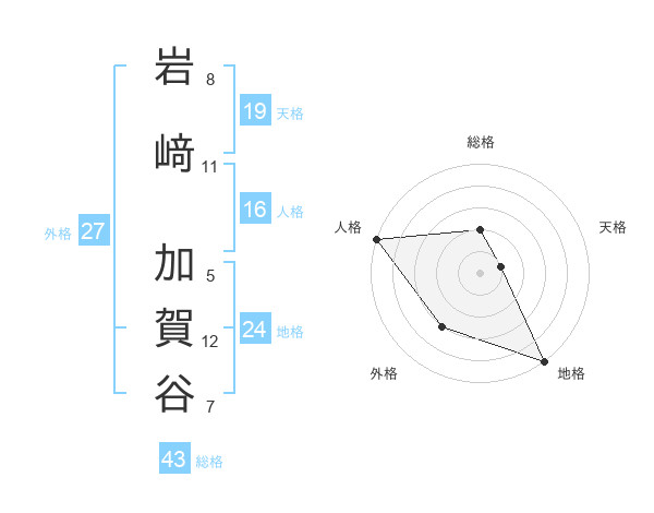 岩﨑 加賀谷さんを姓名の画数から五運を鑑定