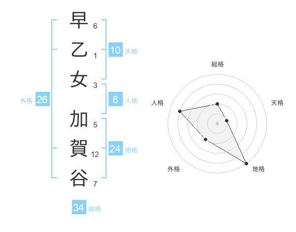 早乙女 加賀谷さんを姓名の画数から五運を鑑定