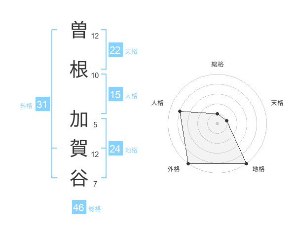曽根 加賀谷さんの総格は46画の1点!