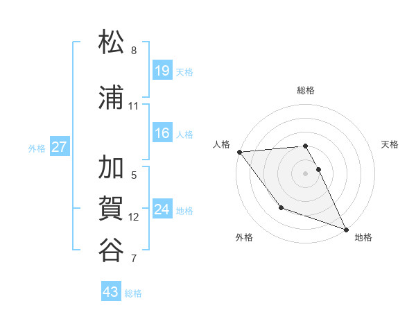 松浦 加賀谷さんを姓名の画数から五運を鑑定