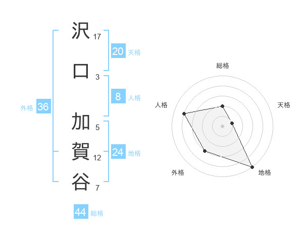 沢口 加賀谷さんの総格は44画の2点!