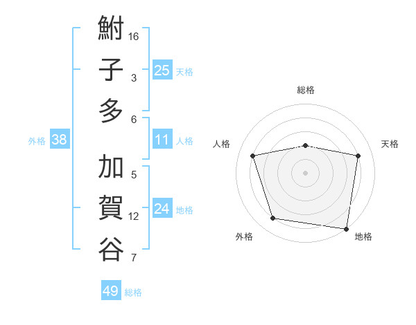 鮒子多 加賀谷さんを姓名の画数から五運を鑑定