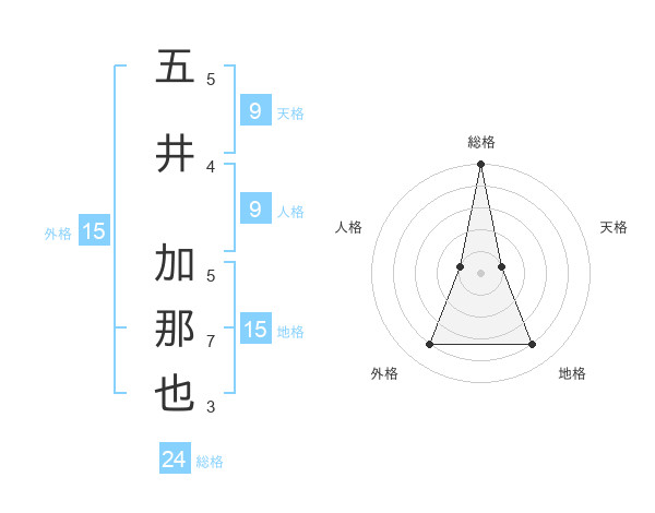 五井 加那也さんの総格は24画の5点!