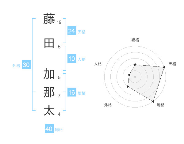 藤田 加那太さんを姓名の画数から五運を鑑定
