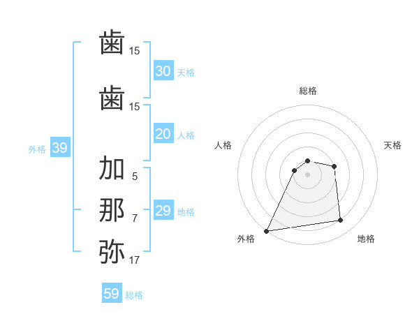 歯歯 加那弥さんを姓名の画数から五運を鑑定