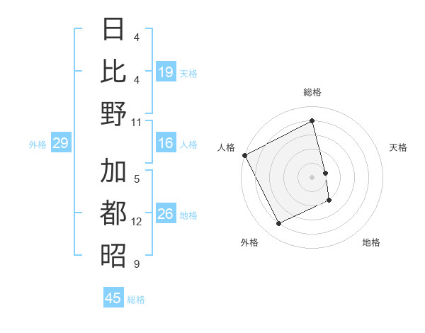 日比野 加都昭さんを姓名の画数から五運を鑑定