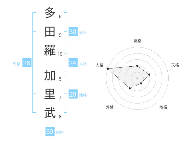 多田羅 加里武さんの総格は50画の2点!