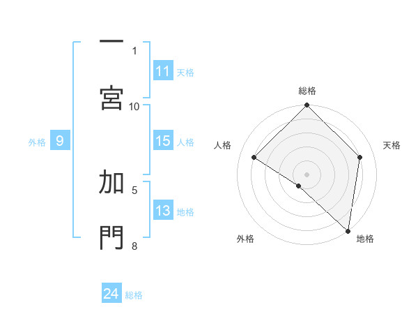 一宮 加門さんの総格は24画の5点!