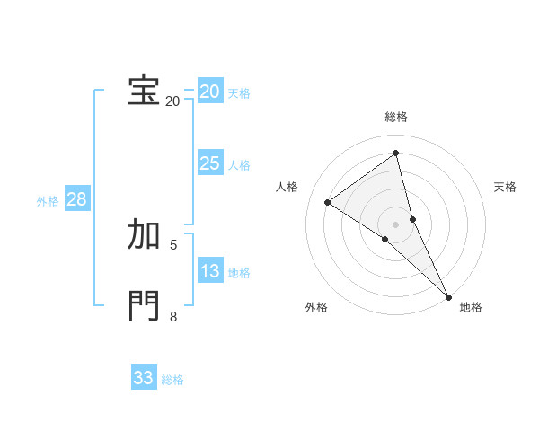 宝 加門さんの総格は33画の4点!