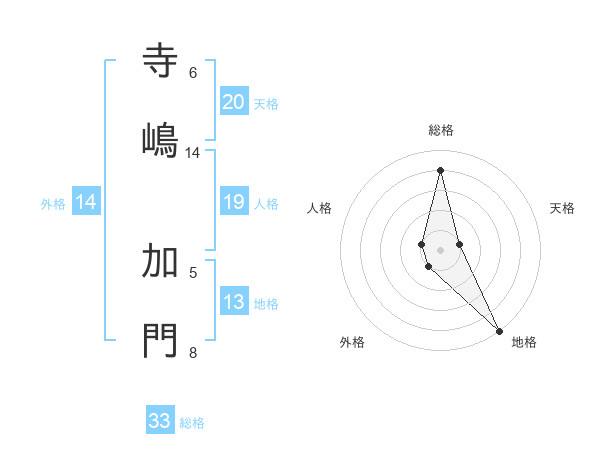 寺嶋 加門さんの総格は33画の4点!