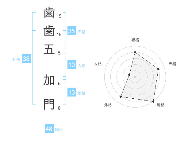 歯歯五 加門さんを姓名の画数から五運を鑑定