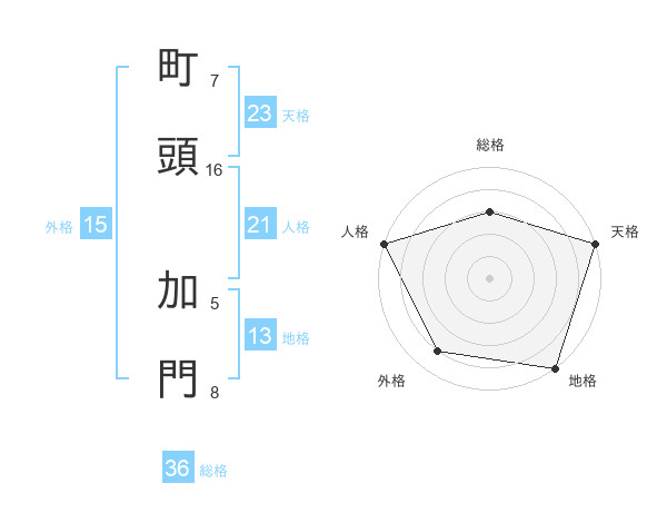 町頭 加門さんの地格は13画の5点!