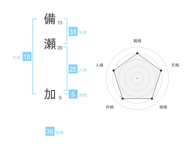 備瀬 加さんの総格は38画の4点!