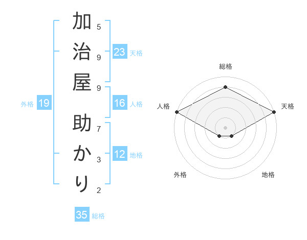 加治屋 助かりさんを姓名の画数から五運を鑑定