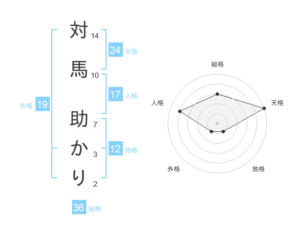 対馬 助かりさんの天格は24画の5点!