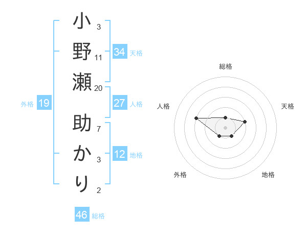 小野瀬 助かりさんを姓名の画数から五運を鑑定
