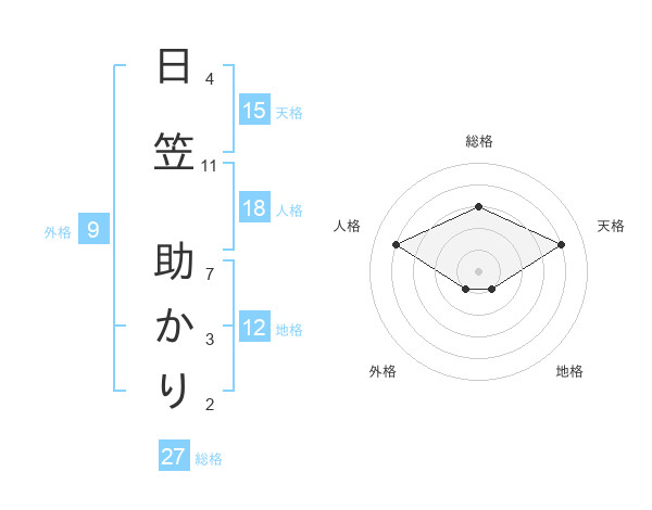 日笠 助かりさんを姓名の画数から五運を鑑定