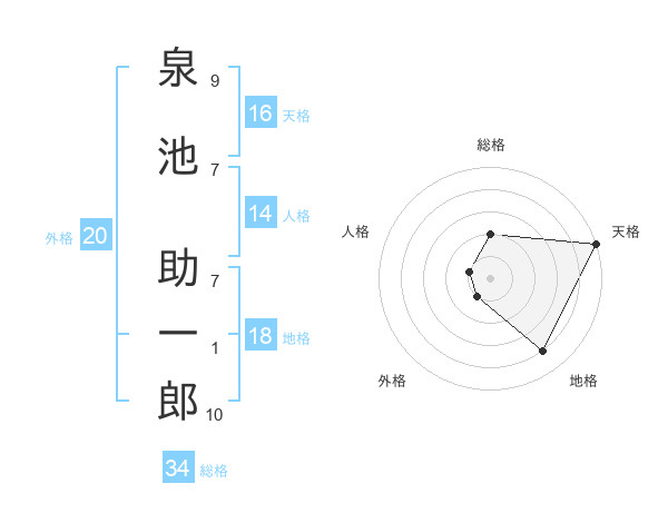 泉池 助一郎さんを姓名の画数から五運を鑑定