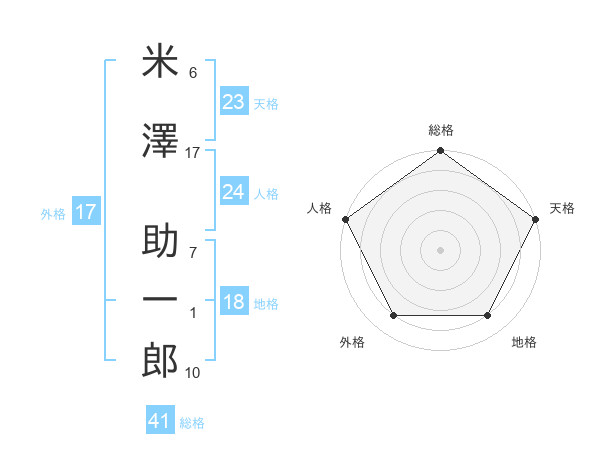 米澤 助一郎さんの総格は41画の5点!