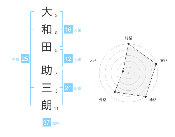 大和田 助三朗さんの総格は37画の5点!