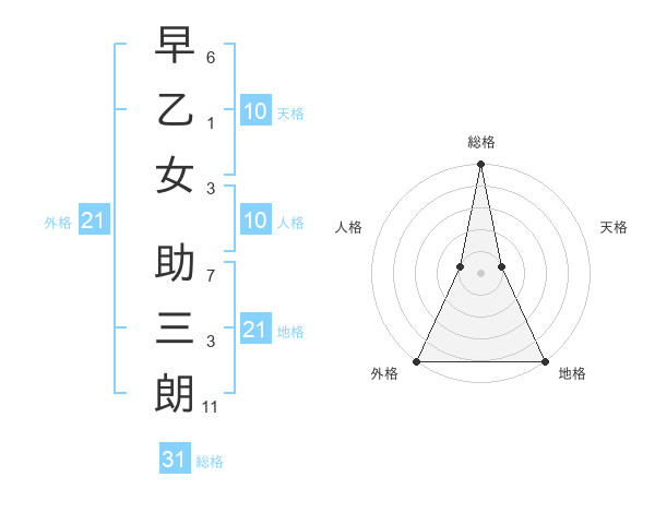 早乙女 助三朗さんの総格は31画の5点!