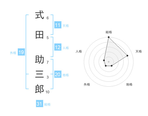 式田 助三郎さんの総格は31画の5点!