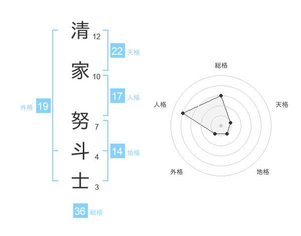 清家 努斗士さんの天格は22画の1点!