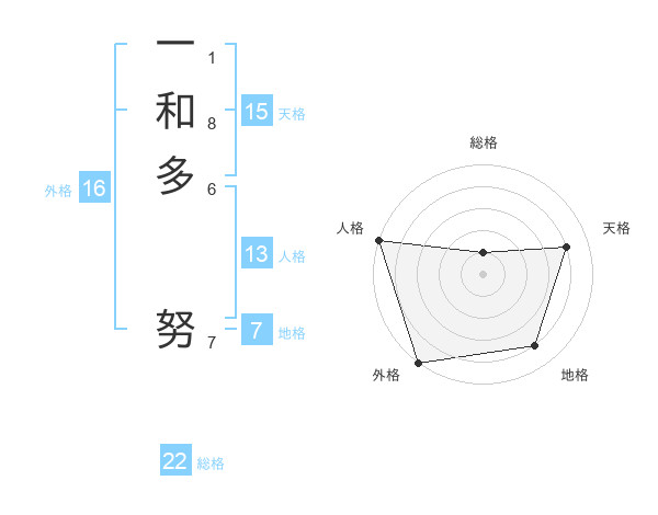 一和多 努さんの外格は16画の5点!