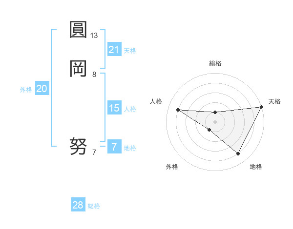 圓岡 努さんの天格は21画の5点!