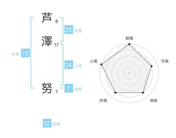 芦澤 努さんの総格は32画の5点!