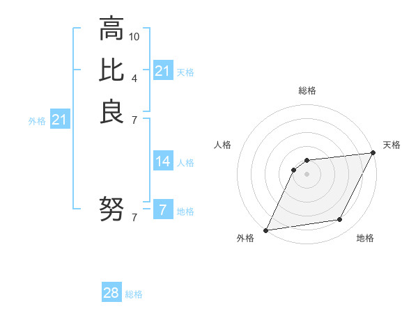 高比良 努さんの天格は21画の5点!