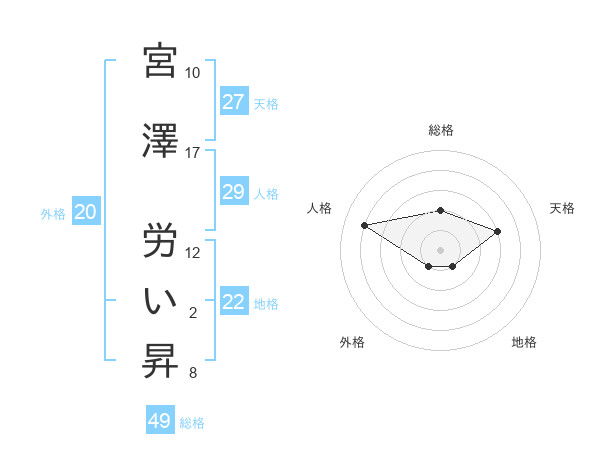 宮澤 労い昇さんを姓名の画数から五運を鑑定