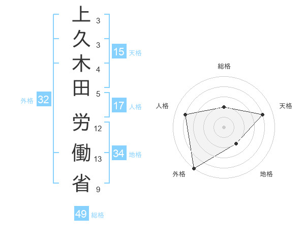 上久木田 労働省さんを姓名の画数から五運を鑑定