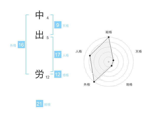 中出 労さんの総格は21画の5点!