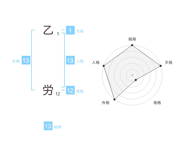 乙 労さんの外格は13画の5点!