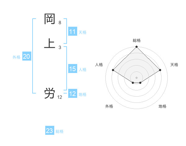 岡上 労さんの総格は23画の5点!