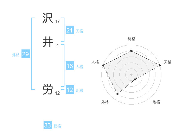 沢井 労さんの総格は33画の4点!