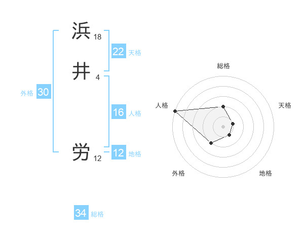 浜井 労さんの総格は34画の2点!