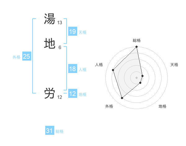 湯地 労さんの総格は31画の5点!
