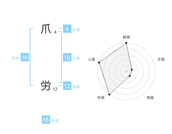 爪 労さんの外格は16画の5点!
