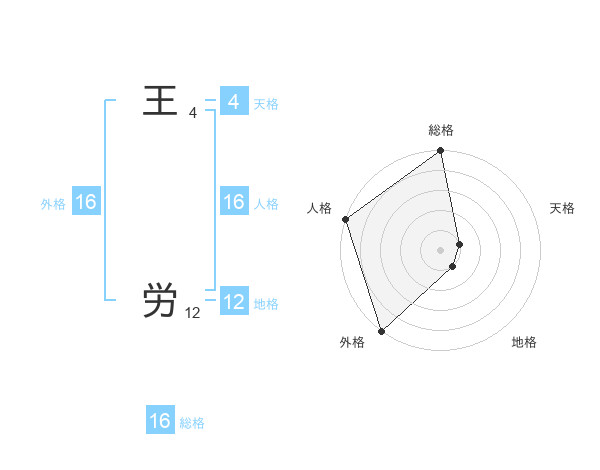 王 労さんの総格は16画の5点!