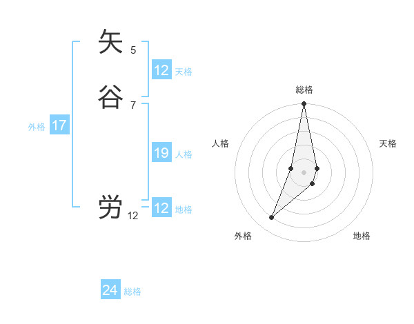 矢谷 労さんの総格は24画の5点!