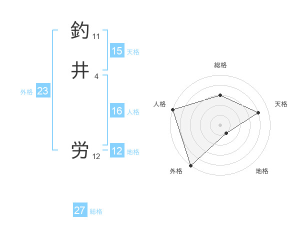 釣井 労さんの総格は27画の3点!