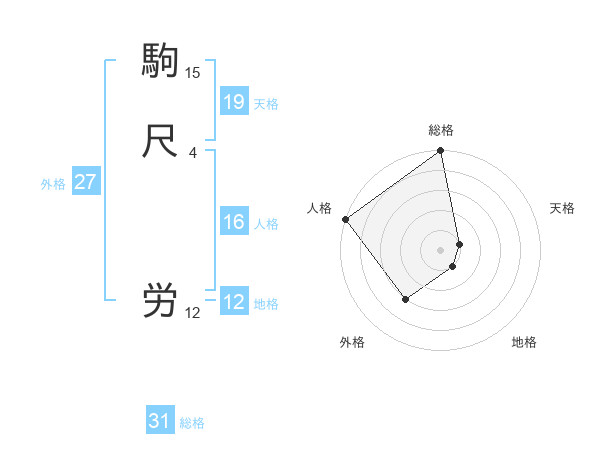 駒尺 労さんの総格は31画の5点!