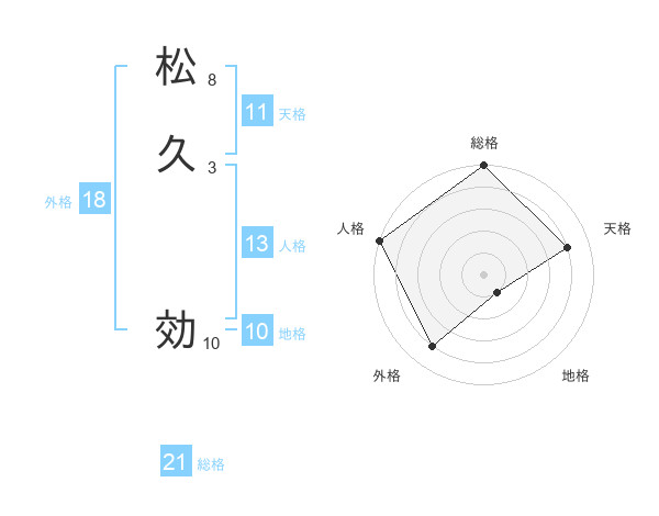 松久 効さんの総格は21画の5点!